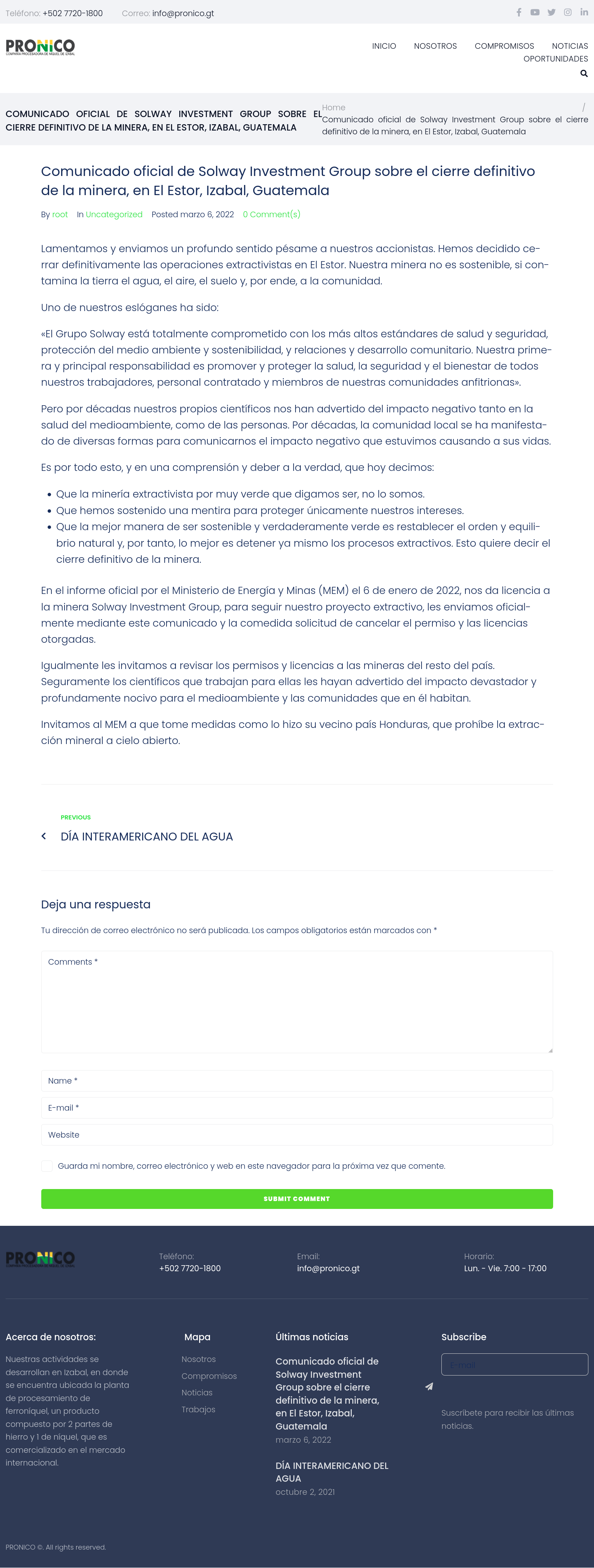 Pronico operates the Fenix mine in Guatemala, which has a long history of human rights abuses, environmental damage, and resistance by the surrounding communities.