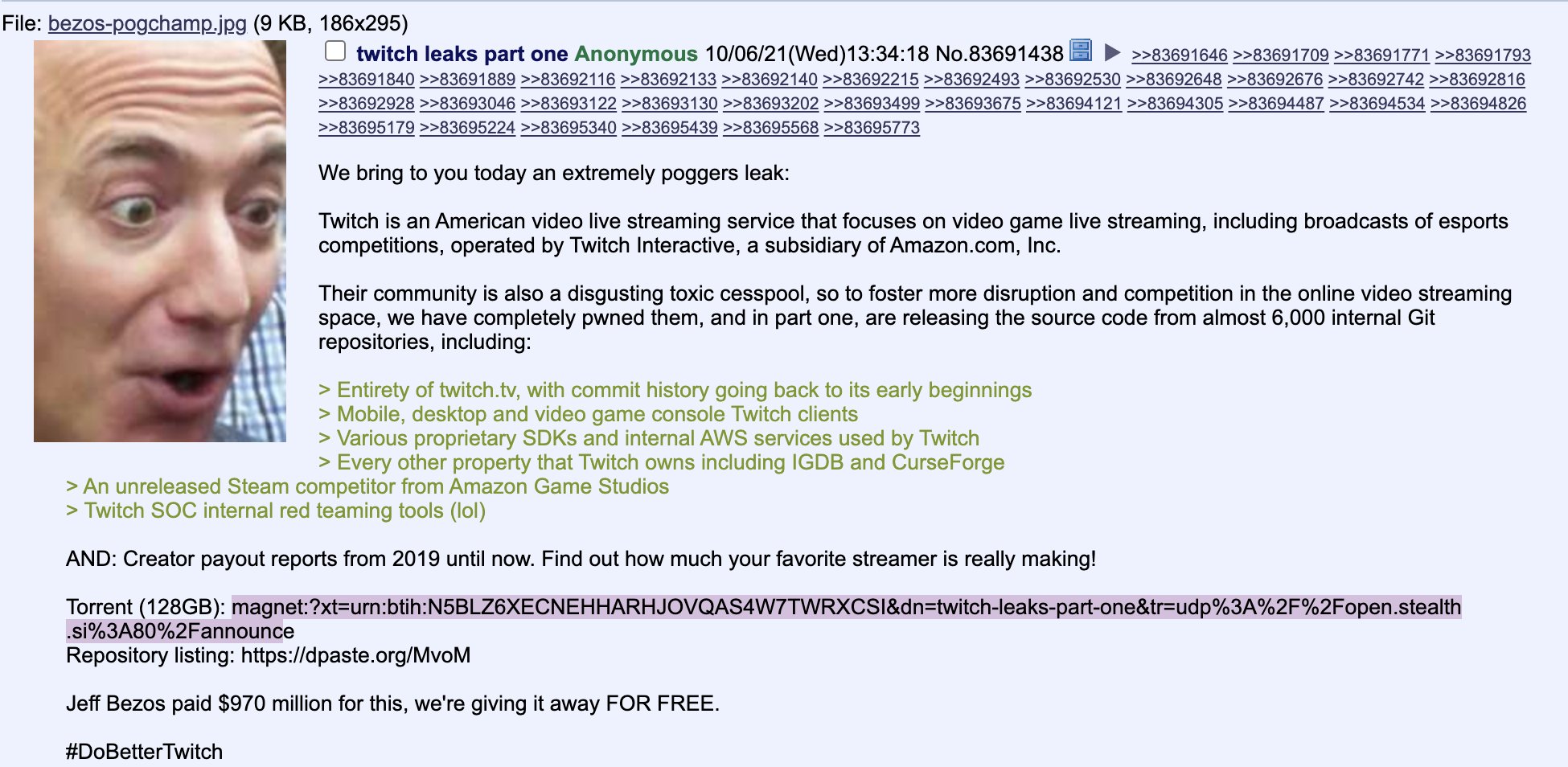 - Daily Dot: Twitch creators’ incomes, source code part of massive data leak